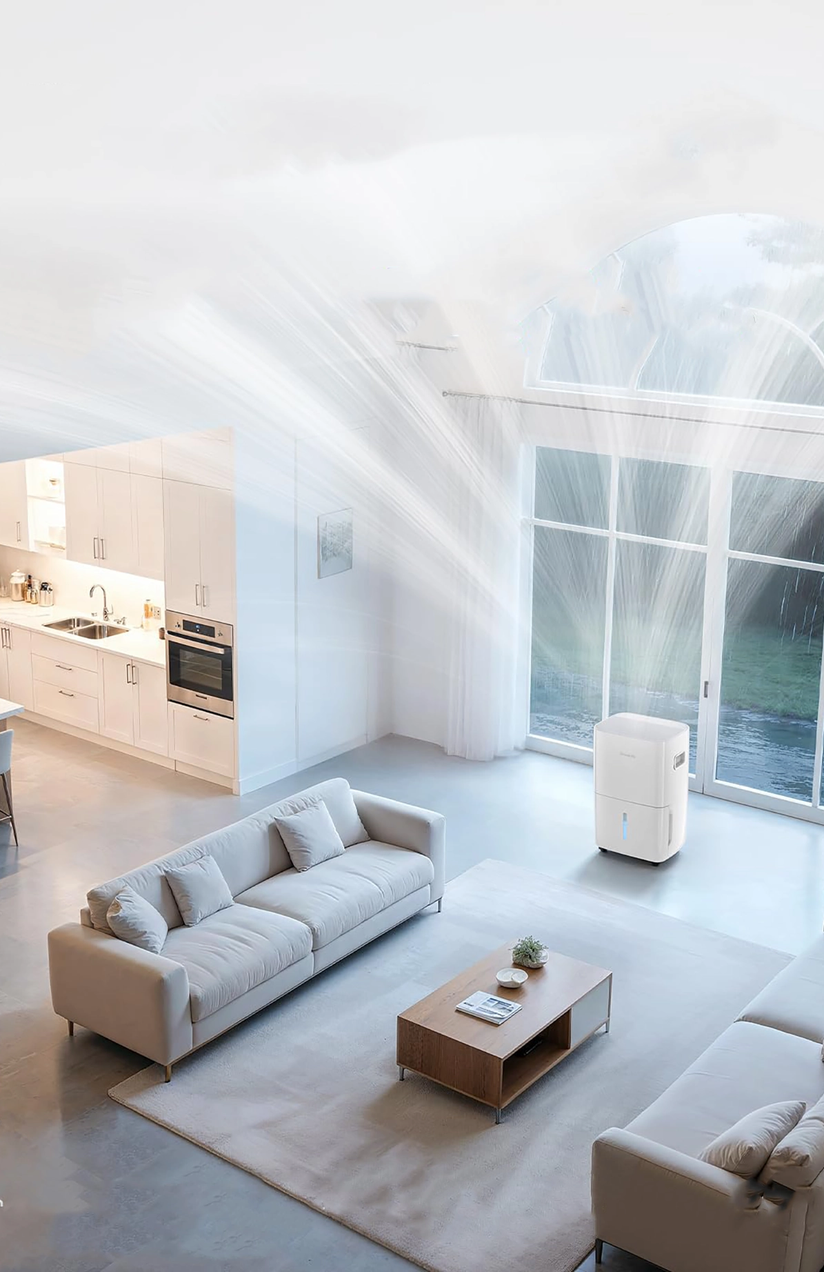Powerful dehumidifier for up to 4,500 sq. ft., with pump and drain hose. Smart humidity control, 5 modes, auto shut-off, and defrost function—perfect for basements, bedrooms, bathrooms, and garages.