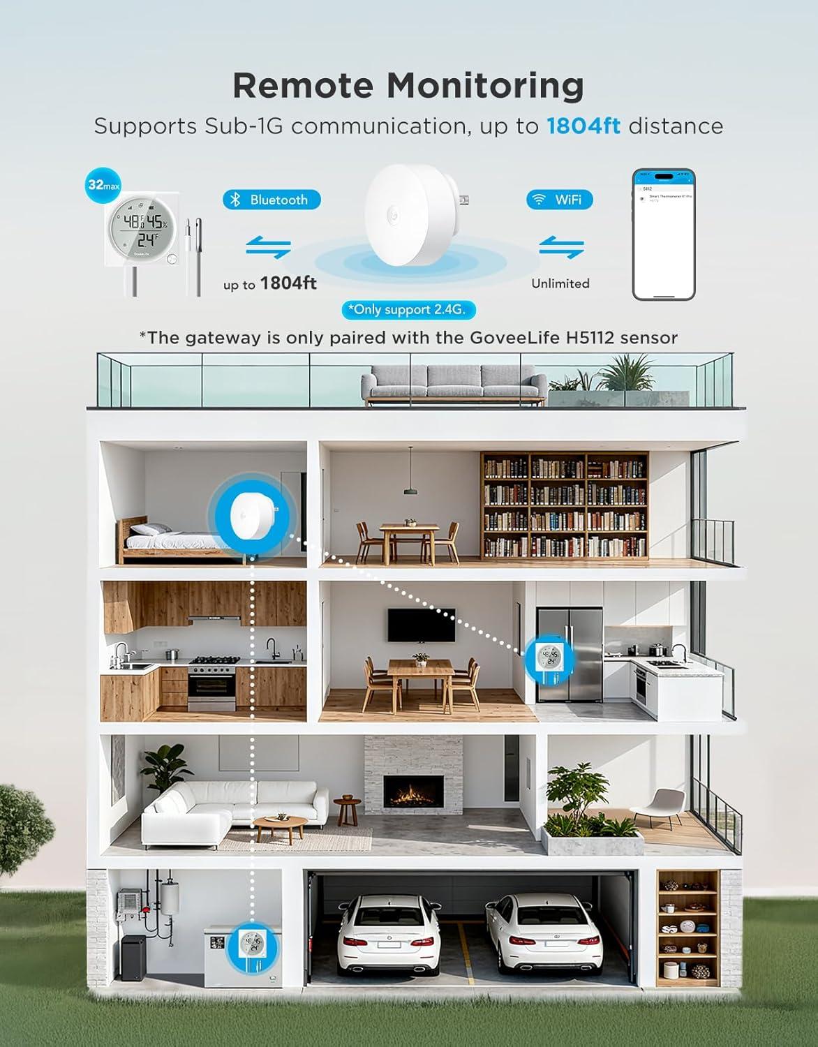 Sensor for H5112 Gateway: The Bluetooth freezer thermometer H5112 can connect with the WiFi Gateway H5044 to work as a WiFi thermometer, then you can monitor without distance limitations.