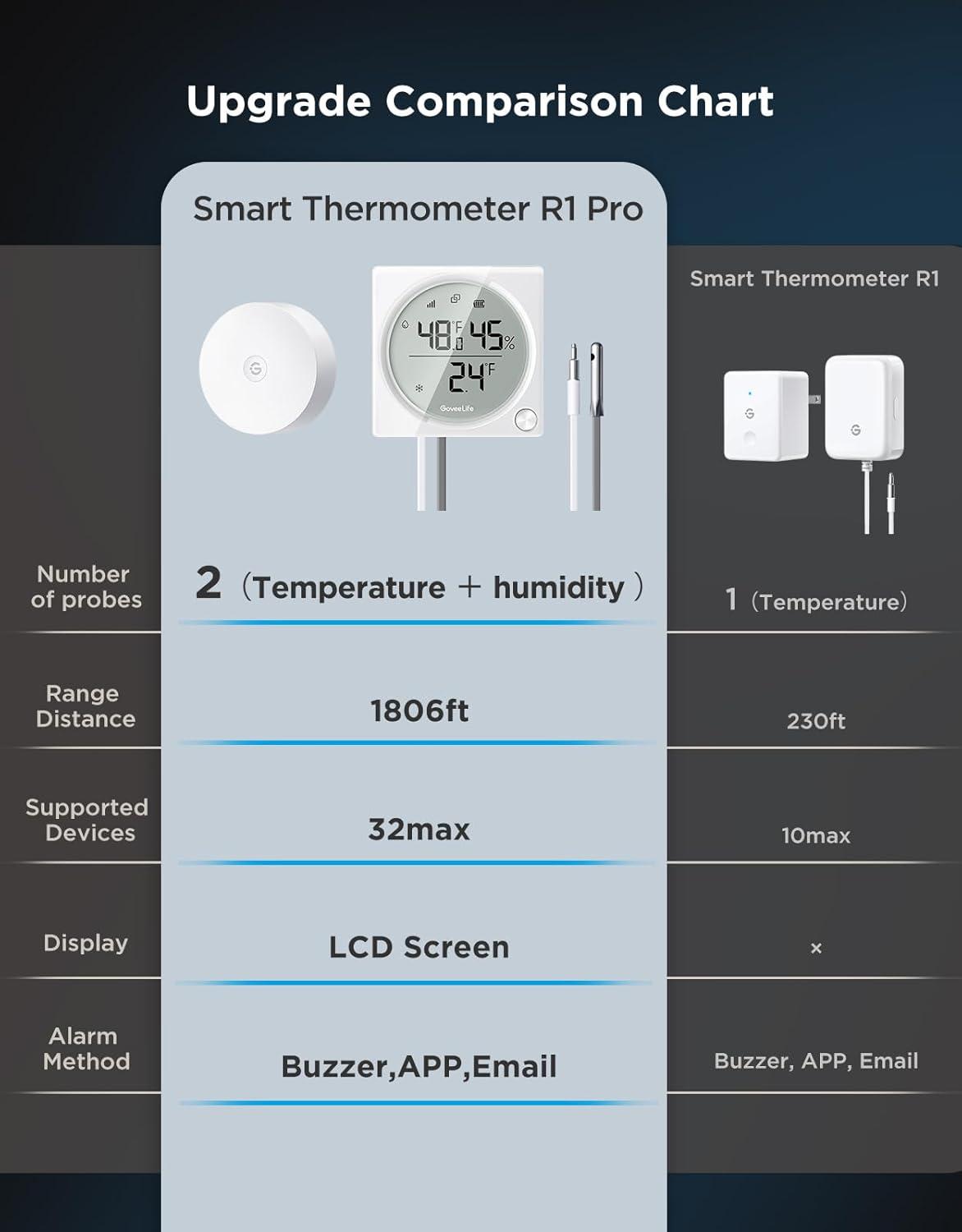 GoveeLife WiFi Refrigerator Thermometer Hygrometer Pro with 2 in 1 Alarm, Wireless Digital Freezer Temperature Humidity with App Email Notification, LCD Display, Free Data Export, for Fridge Kitchen